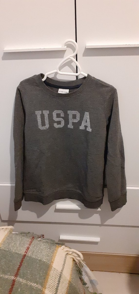 Gri renkli, uzun kollu ve yuvarlak yakalı sweatshirt, rahat kalıp ve yumuşak kumaşla tasarlanmıştır. Üzerinde USPA baskısı bulunmaktadır.
