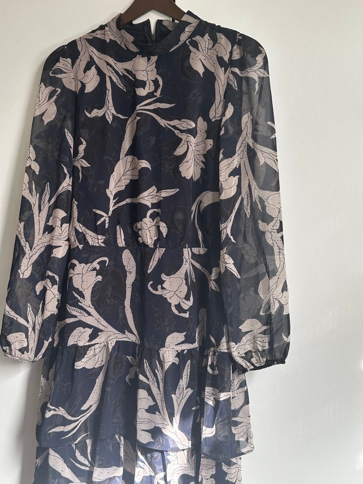 Yüksek yakalı, uzun kollu, volan detaylı gri, uzun, bol kesim bohem tarzda elbisedir. Ofis kullanımı için uygundur. Trendyol Milla'dan alındı. Hiç giyilmedi. Deformesi yok. 36-38 beden uyumlu