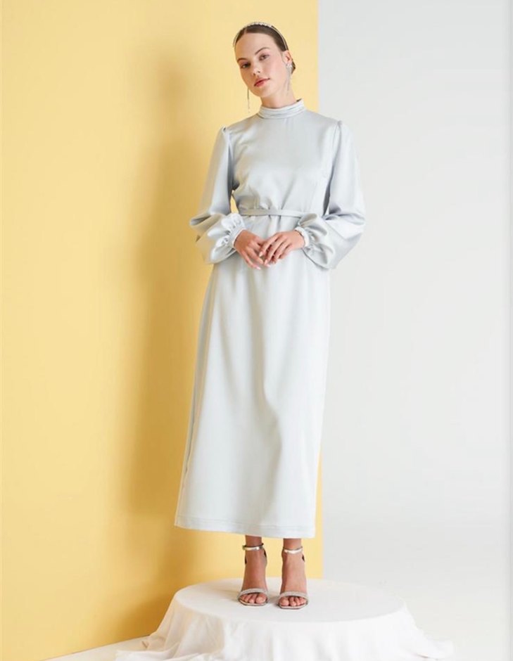 Gri Uzun Kollu Yüksek Yaka Kadın Elbise