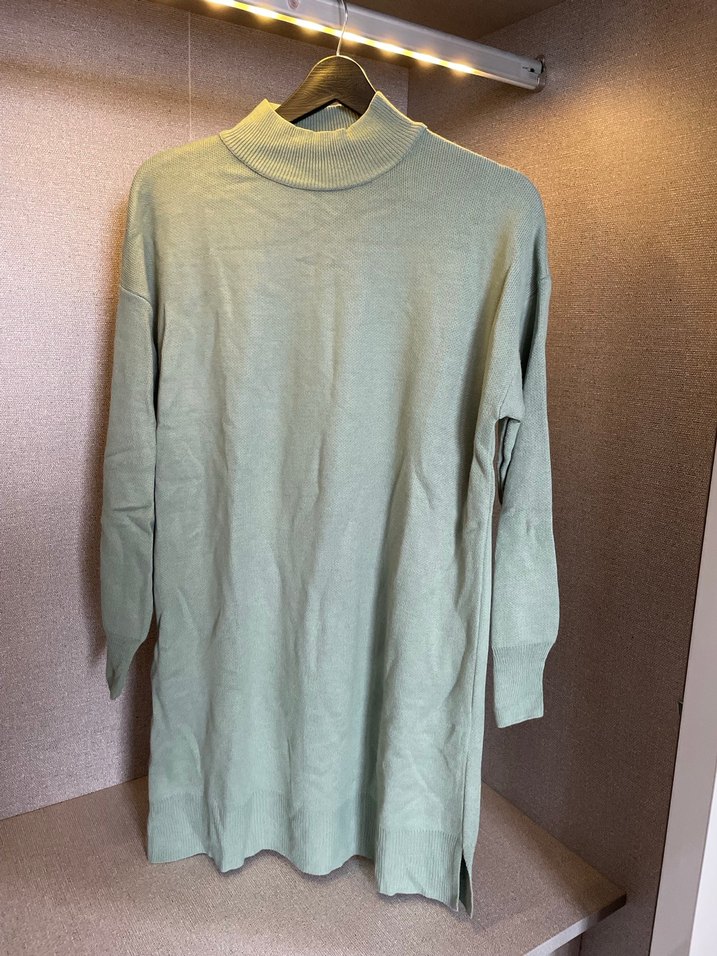 Kadınlar için uzun kollu, yüksek yakalı, bol kesim ve uzun boylu triko kazak. Yumuşak ve sıcak dokuda, pastel gri renkte, günlük ve sokak stiline uygun.