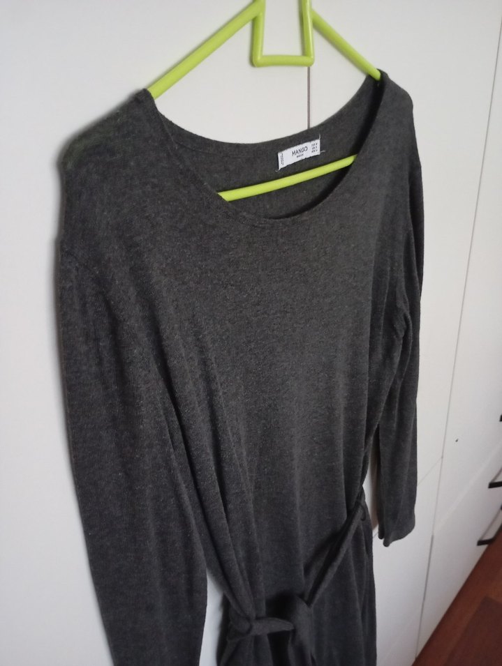 Gri renkli, yuvarlak yaka ve uzun kollu hamile tuniği, rahatlık için bol kesim ve yumuşak keten kumaştan üretilmiştir. Midi boyda ve desensiz, günlük kullanım için uygundur.