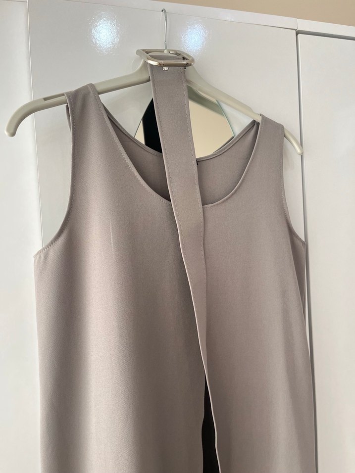 Gri Uzun Kolsuz Drapeli Elbise