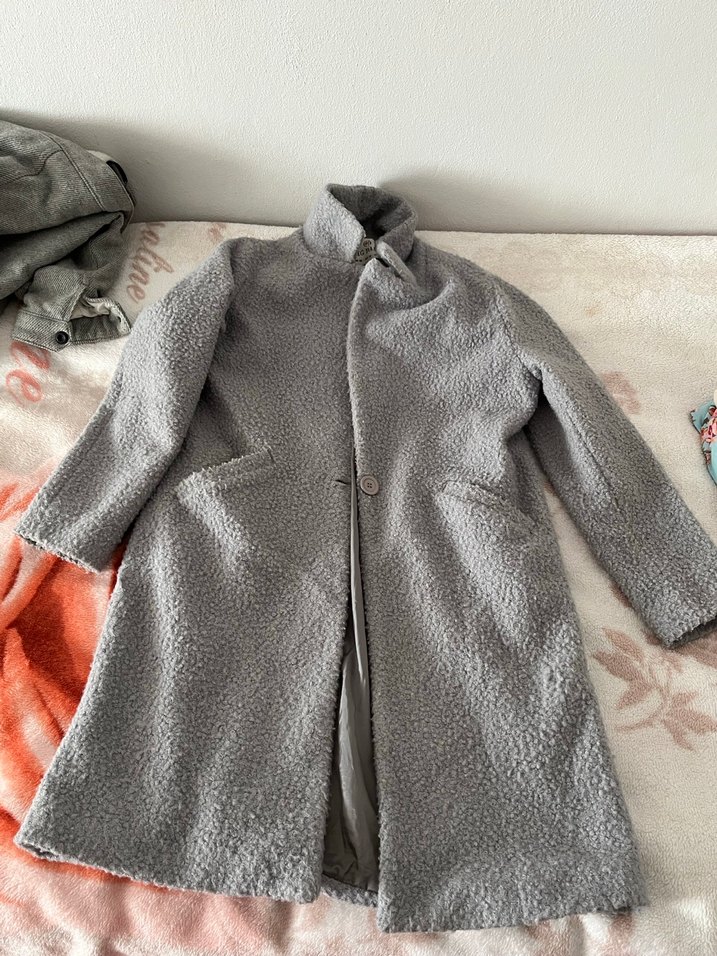 Gri Uzun Kürklü Kadın Kaban