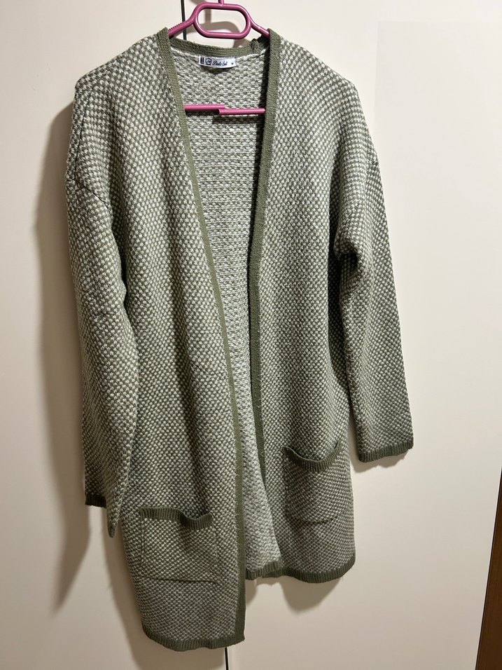 Yumuşak yünden örülmüş, haki uzun kadın hırka. Salaş kesim, uzun kollu ve yaka detaylıdır. Günlük kullanım ve sokak stiline uygundur. Uzunluk 100 cm genişlik 50 cm