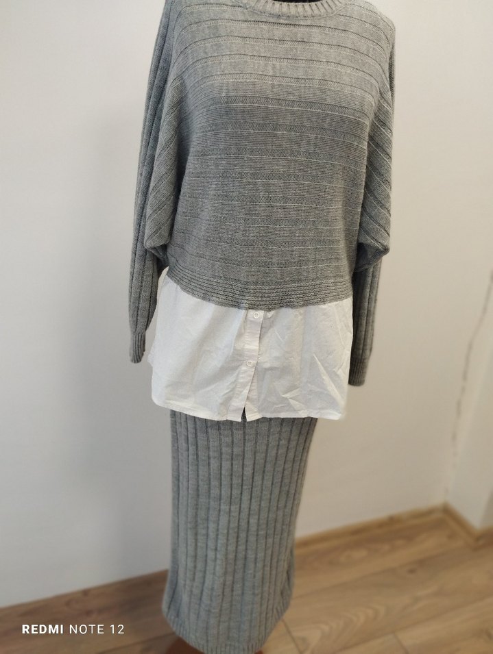 Jile boy omuzdan 128 cm jile iki kol arası esnetmeden 45 cm esnek 55 cm. Kazak gömlek kısmına kadar yakan boyu 50 cm. Gömlek detayı ile birlikte 70 cm. iki kol arası 68 cm. Gömlek detayı sonradan diktirilmistir. Gri uzun örgü kadın kazak, bol kesim yarasa kol kazak ve yuvarlak yaka detayına sahiptir. Hile dar kesim. Yumuşak örme kumaştan üretilmiş, desensiz ve günlük kullanım için uygundur. Etiketi yok ancak yumuşacık triko.
