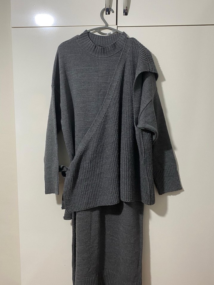 Gri Uzun Örgü Triko Elbise