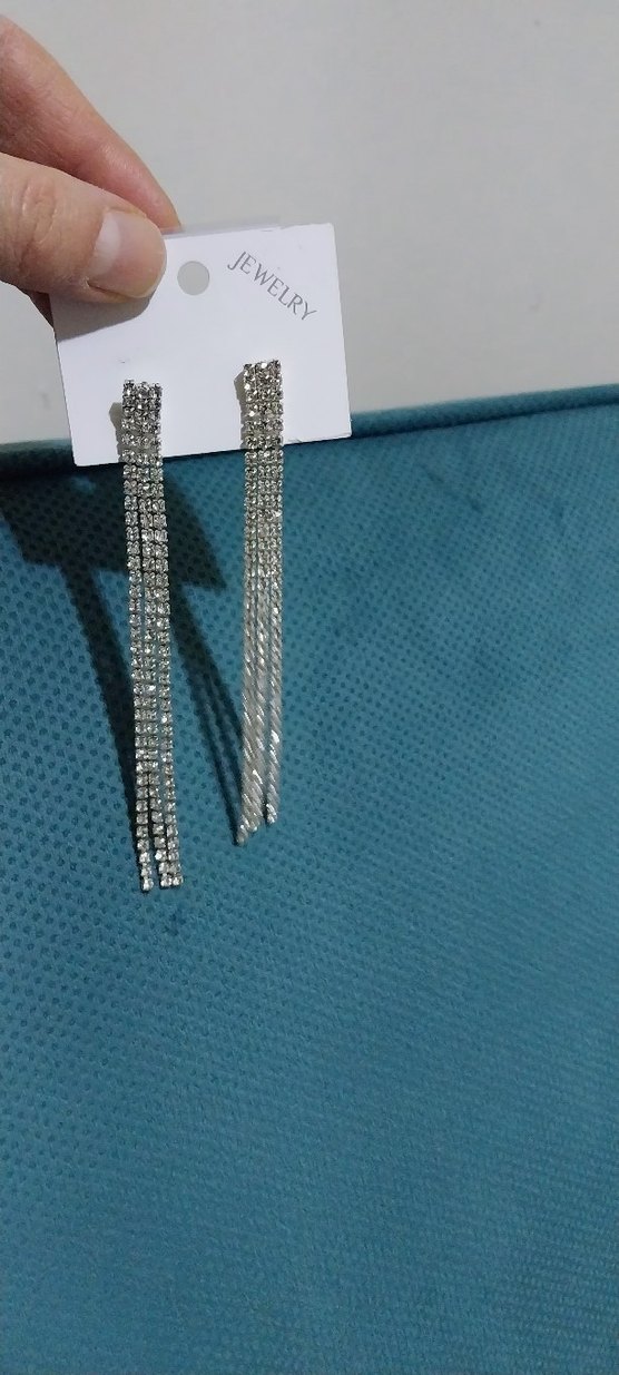 Düğün ve şık stiller için uygun, payetli detaylı ve işlemeli desenli uzun gri küpeler. ✨