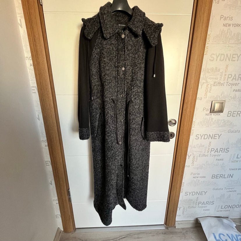 Gri uzun yün kaban. Birkaç kere kullanıldı