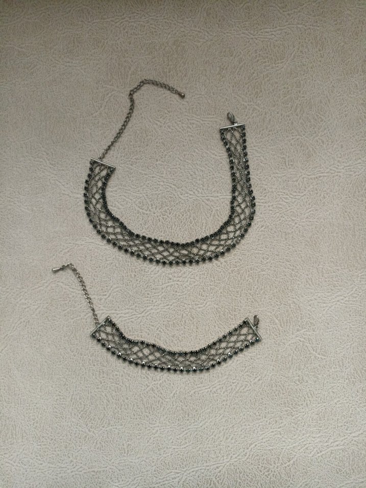 Gri Uzun Zincir Detaylı Bohem Kolye bileklik takım
