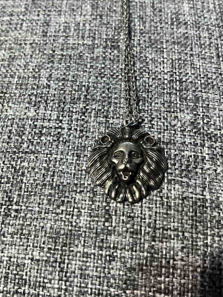 Gri Uzun Zincirli Aslan Figürlü Kolye