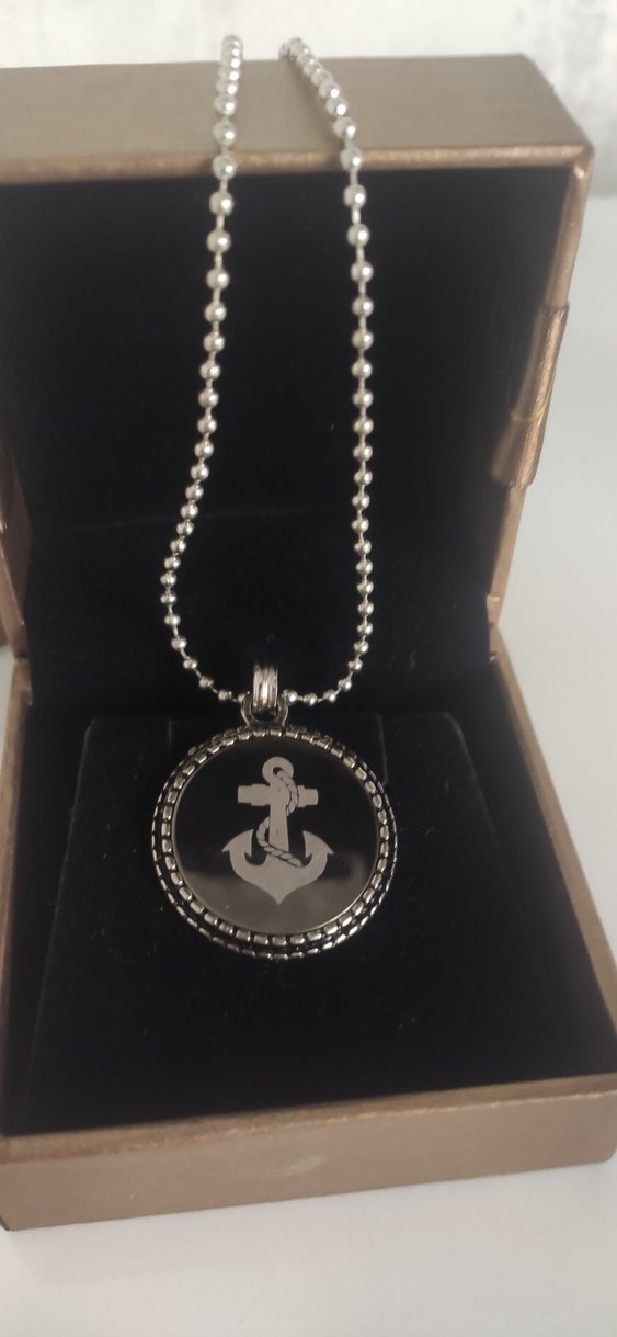 Uzun gri zincirli, kabartmalı çapa deseni olan klasik gotik tarzda kolye. ⚓ çelik hiç kullanılmamış kolye