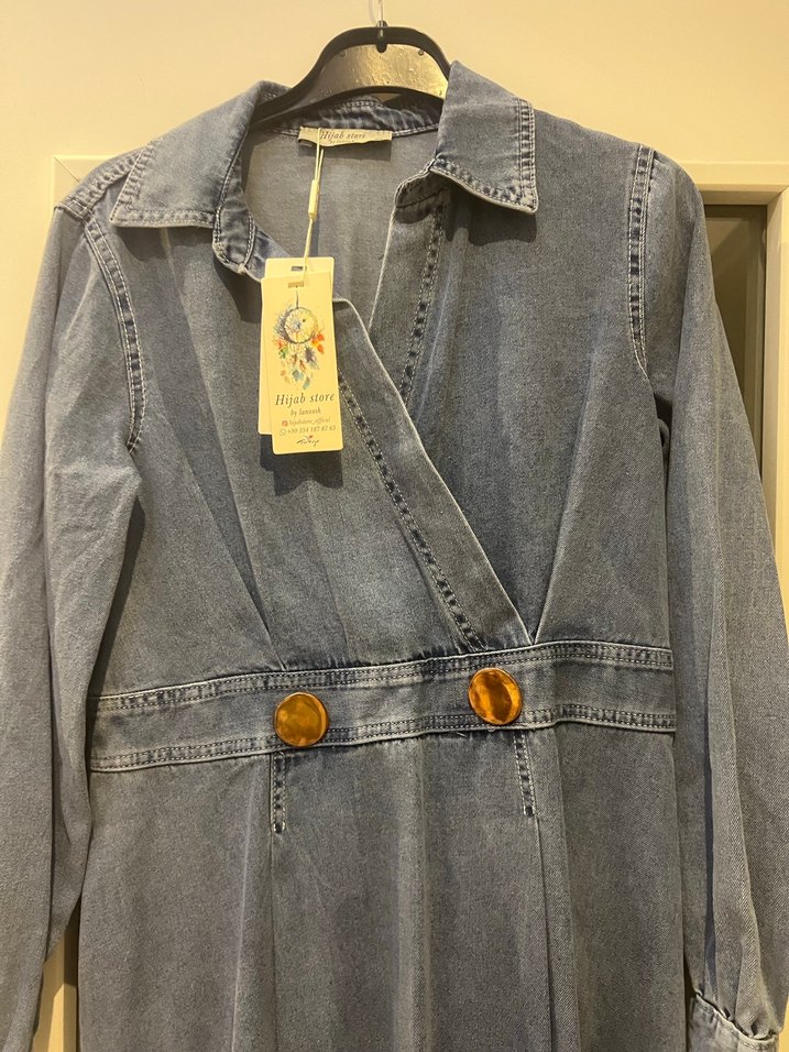 Uzun kollu bol kesım kadın denım elbıse