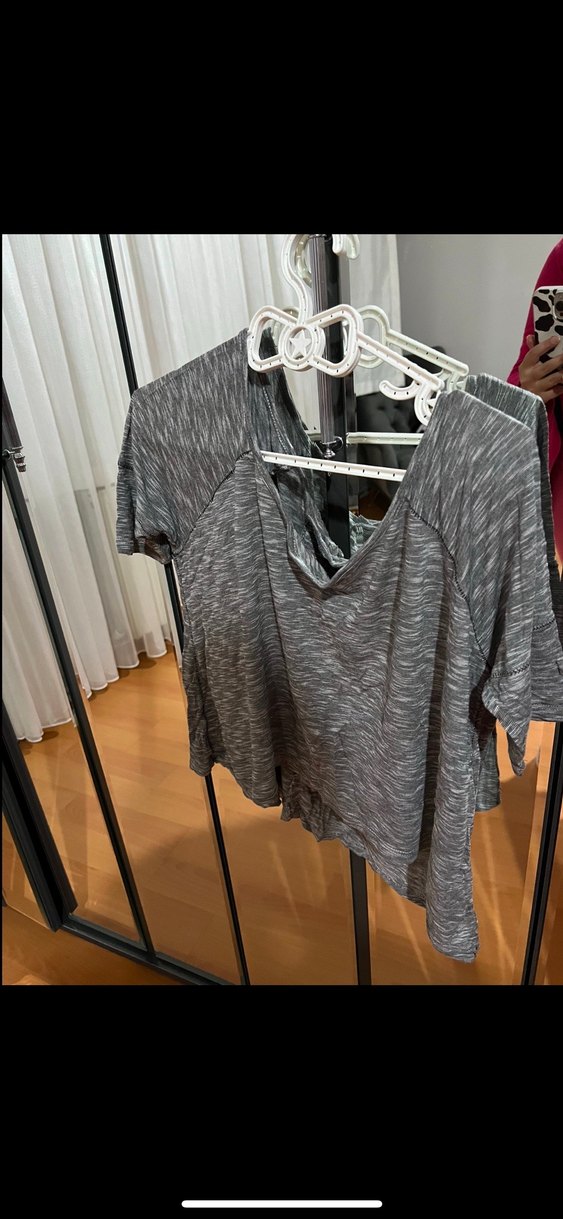 Gri renkte, V yakalı ve kısa kollu hamile tişörtü, rahat kesim ve yumuşak keten kumaştan yapılmıştır. Günlük sokak stili için zahmetsiz şıklık sunar. 1 kez GİYİLDİ-İADESİ YOKTUR !!