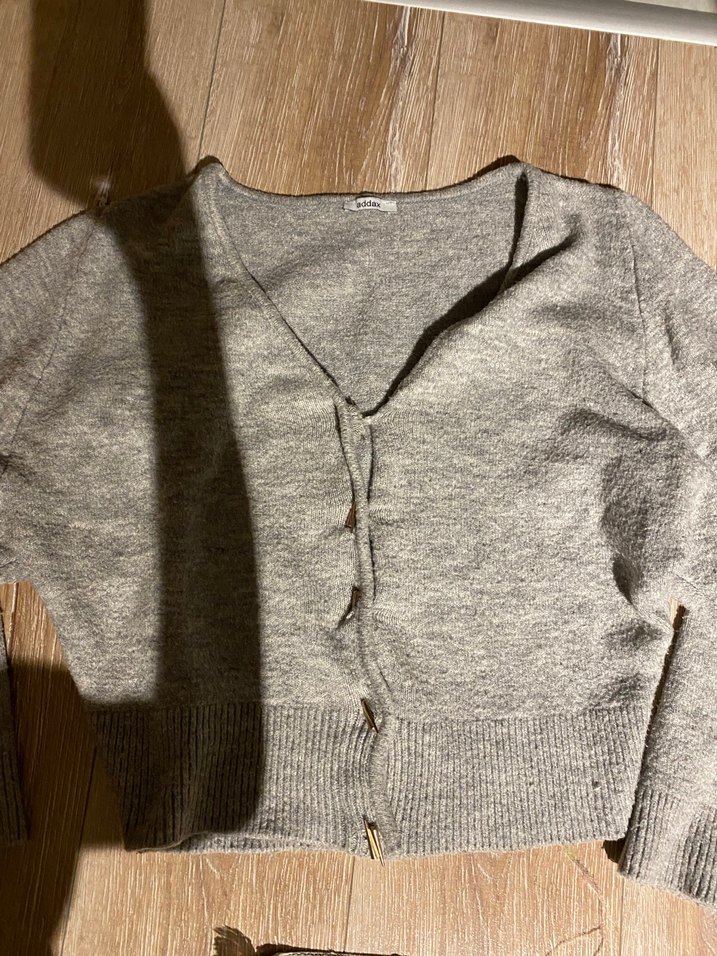 Gri V Yaka Düğmeli Kadın Hırka Kazak