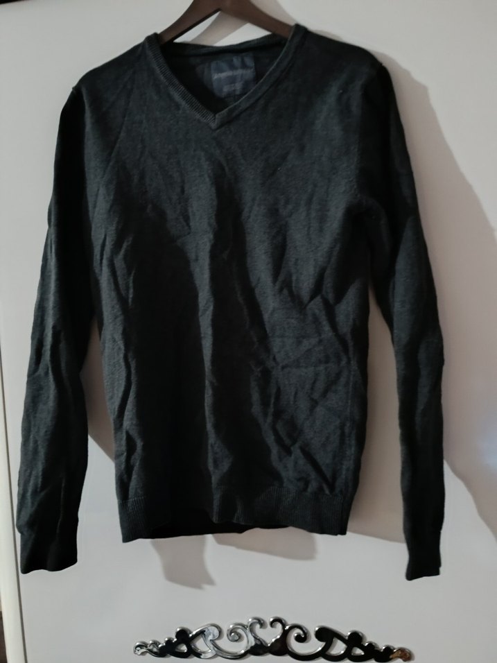 Gri renkte, keten kumaştan uzun kollu, V yakalı ve slim fit kesime sahip erkek trikosudur. Günlük rahat sokak stili için uygundur.