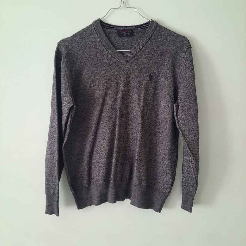 Gri renkli, V yakalı ve uzun kollu erkek kazak, yumuşak yün kumaştan örülmüş, bol kesim ve günlük sokak stili için uygundur. Örgü ve desensizdir. 11 12 yaş erkek çocuk kazak