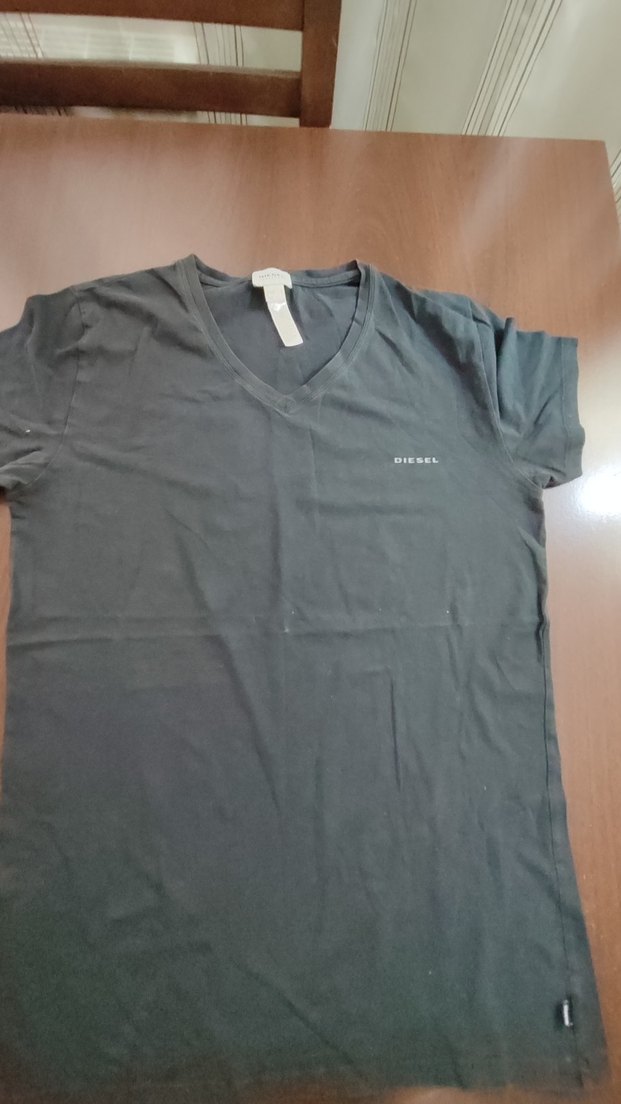 Gri renk, V yaka, rahat kesim erkek tişört. Göğüste küçük Diesel baskısı bulunur. Normal boy ve yumuşak kumaşlıdır.