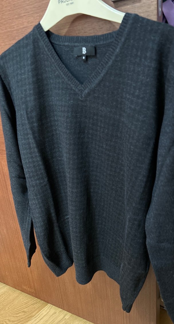 Gri renkli, V yaka ve uzun kollu erkek yün kazak. Rahat kesimi ve örgü dokusuyla günlük kullanıma uygun, sade ve konforlu bir modeldir.