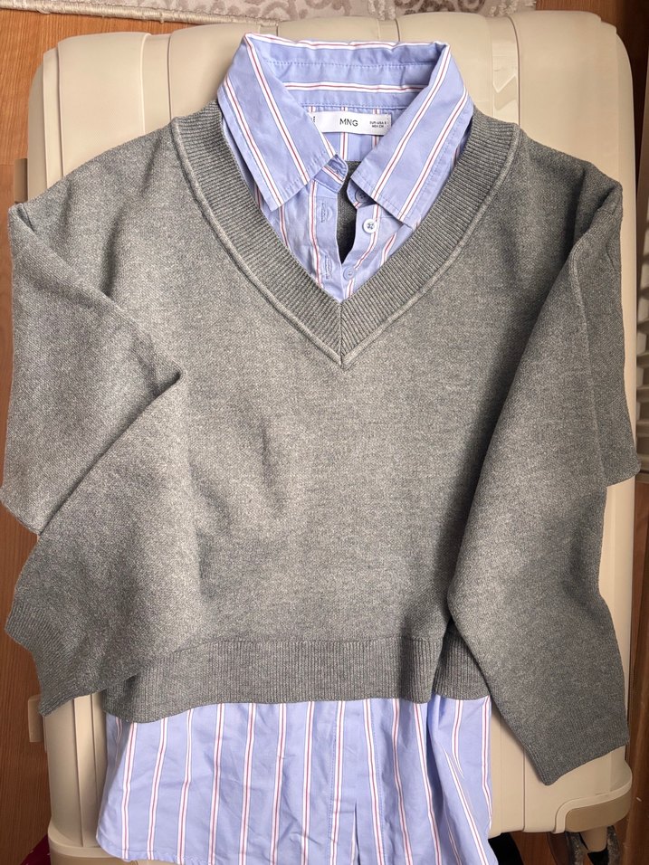 Gri V Yaka Gömlekli Kazak