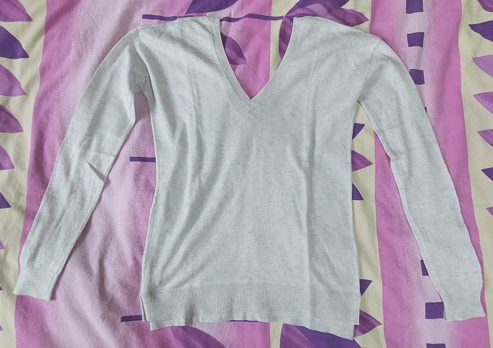 Gri renkte, pamuklu kumaştan, V yakalı ve kısa kollu kadın trikosudur. Rahat kesimi ve normal boyuyla günlük sokak stiline uygundur.
