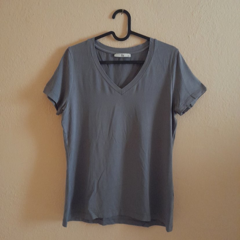 Kadınlar için V yakalı ve kısa kollu, bol kesim tişört. Gri renkte, günlük sokak stiline uygun sade ve minimal tasarım. Rahat ve hafif kumaş kullanılmış. Az giyilmiştir sorunu yoktur göğüs 46 boy 62 cm.dir #kadın #giyim #kadıngiyim #bluz #kadınbluz