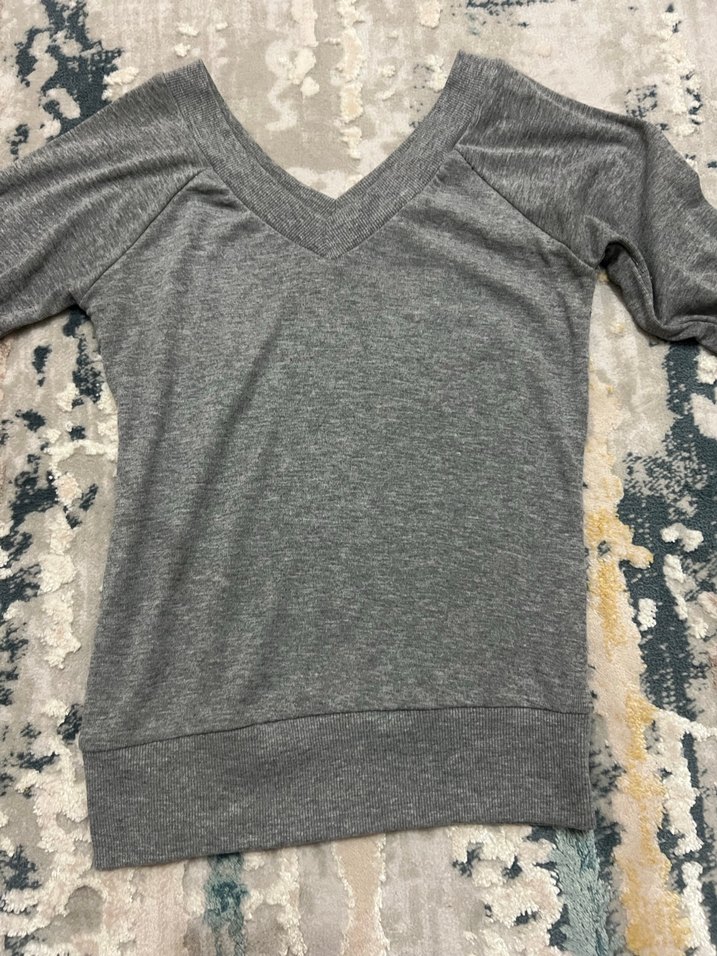Gri V Yaka Kadın Tişört