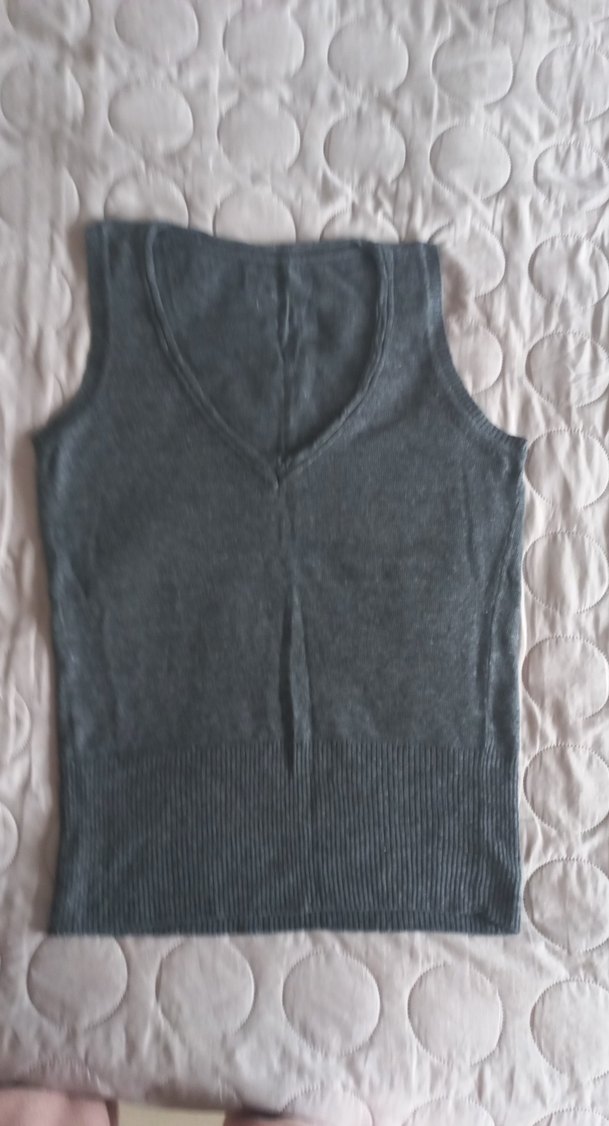 V yaka, kolsuz, gri triko süveter. Normal midi boyda, sade ve desen içermeyen günlük kullanıma uygun basic model.