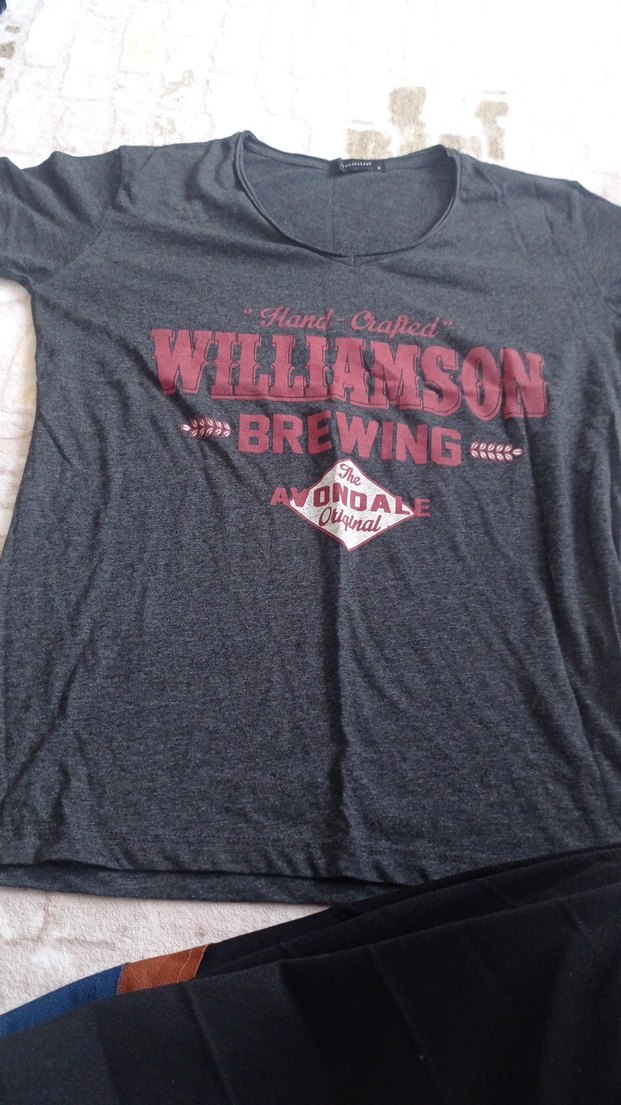 Gri pamuklu, V yakalı ve kısa kollu, baskılı ve düğmeli detaylı bol kesim tişört. Rahat bohem tarz.