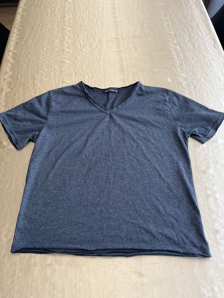 Gri renkte, kısa kollu ve V yakalı bayantişörtü. Rahat kesimi ve yumuşak denim kumaşıyla günlük kullanım için uygundur.