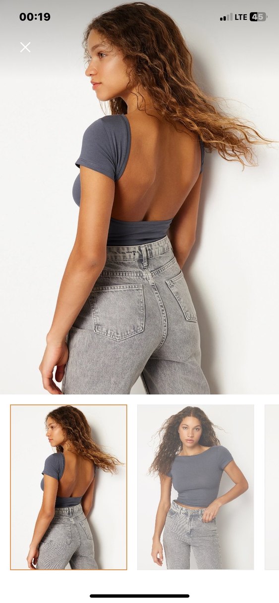 Fitted kesim gri denim bluz, V yaka ve kısa kollu, günlük kullanıma uygun normal boyda, zahmetsiz şıklık sunar.Denemiştim hiç kullanmadım yepyeni.İsteyene daha fazla fotoğraf atabilirim.