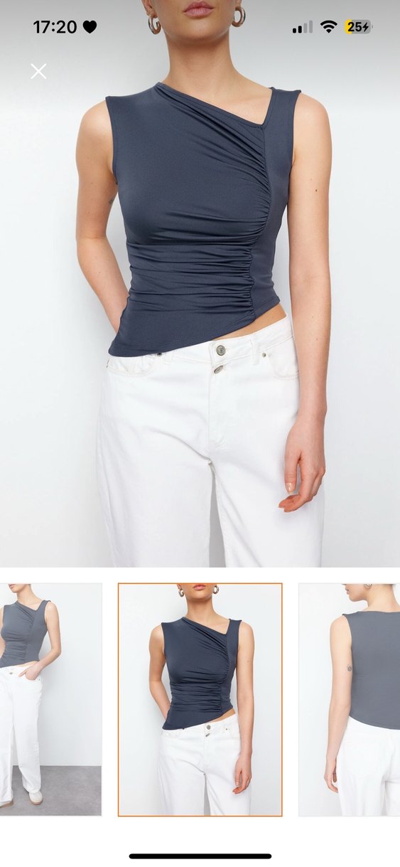 Gri kolsuz denim bluz, V yaka ve vücuda oturan kesimiyle rahat ve şık bir görünüm sunar. Günlük kullanıma uygundur. 3 kere giymişimdir tertemiz vücuda oturuyor