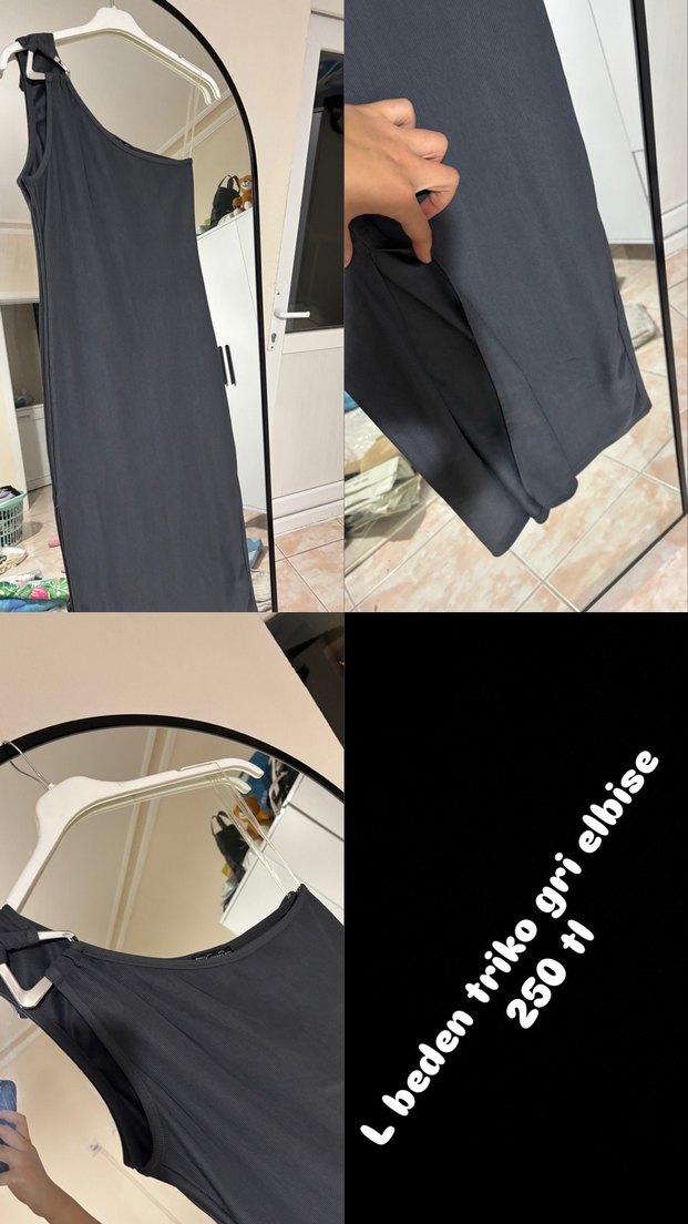 V yaka ve yırtmaçlı, kolsuz gri uzun elbise. Yumuşak sentetik kumaştan, vücuda oturan kesimiyle minimalist ve şık. Günlük kullanıma uygun.