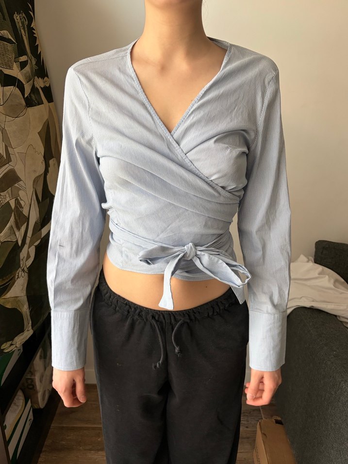AdL kuşaklı ve V yakalı gri, uzun kollu