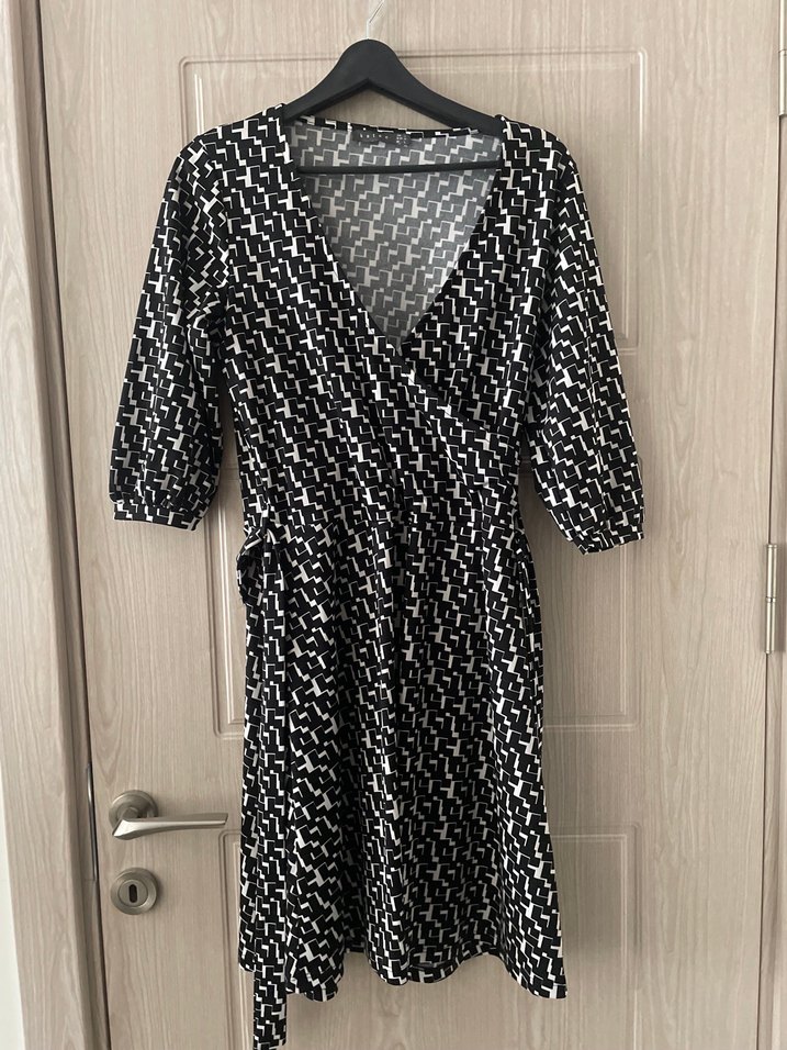 Gri yılan desenli, V yakalı, dökümlü midi elbise. Rahat kalıp, sentetik yumuşak kumaş ve askılı kollara sahip, günlük sokak stiline uygun.
