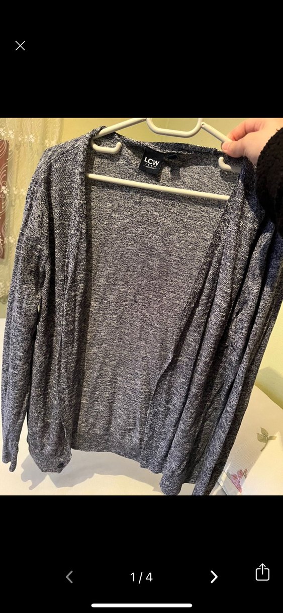 Gri renkli, uzun kollu ve V yakalı örgü hırka. Keten kumaştan, midi boyda ve bol kesimdir. Günlük sokak stili için uygundur.