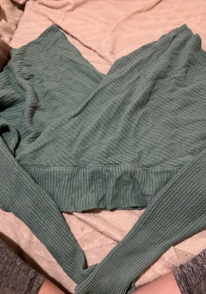 Gri renkli, uzun kollu ve V yaka örgü kadın kazak. Sentetik kumaştan üretilmiş, midi boyda, sade ve rahat bir tasarıma sahip.
