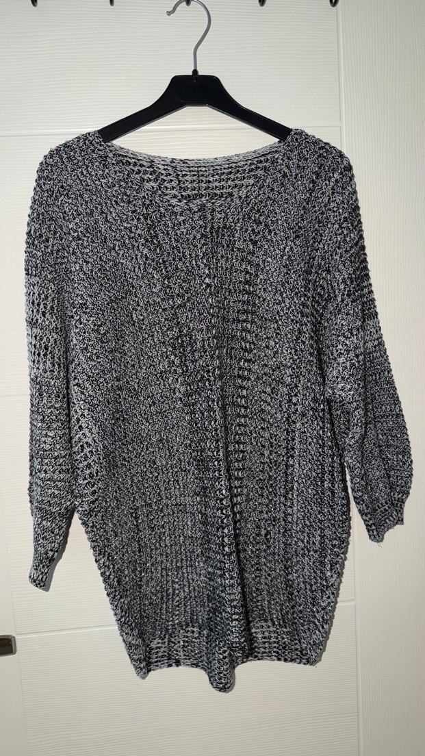 Gri renkli, uzun kollu ve V yakalı örgü kadın kazak. Rahat kesimi ve normal boyu ile günlük kullanıma uygundur.