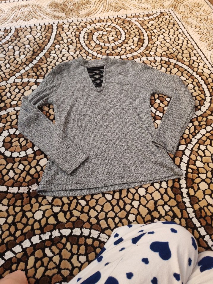 Gri renkli, uzun kollu ve V yakalı örgü kadın kazak, rahat ve bol kesimdir. Günlük kullanıma uygundur, desensiz ve konforlu bir yapıya sahiptir.