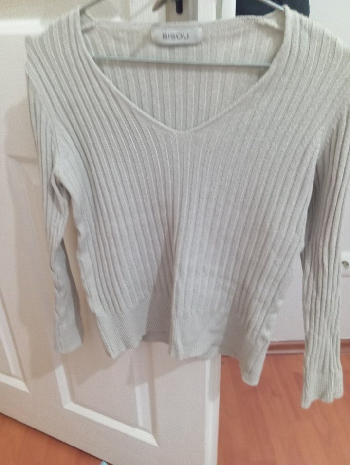Gri renkli, uzun kollu ve V yakalı örgü kadın kazak. Fitted kesimi ve midi uzunluğu ile rahat ve şık bir görünüm sunar.