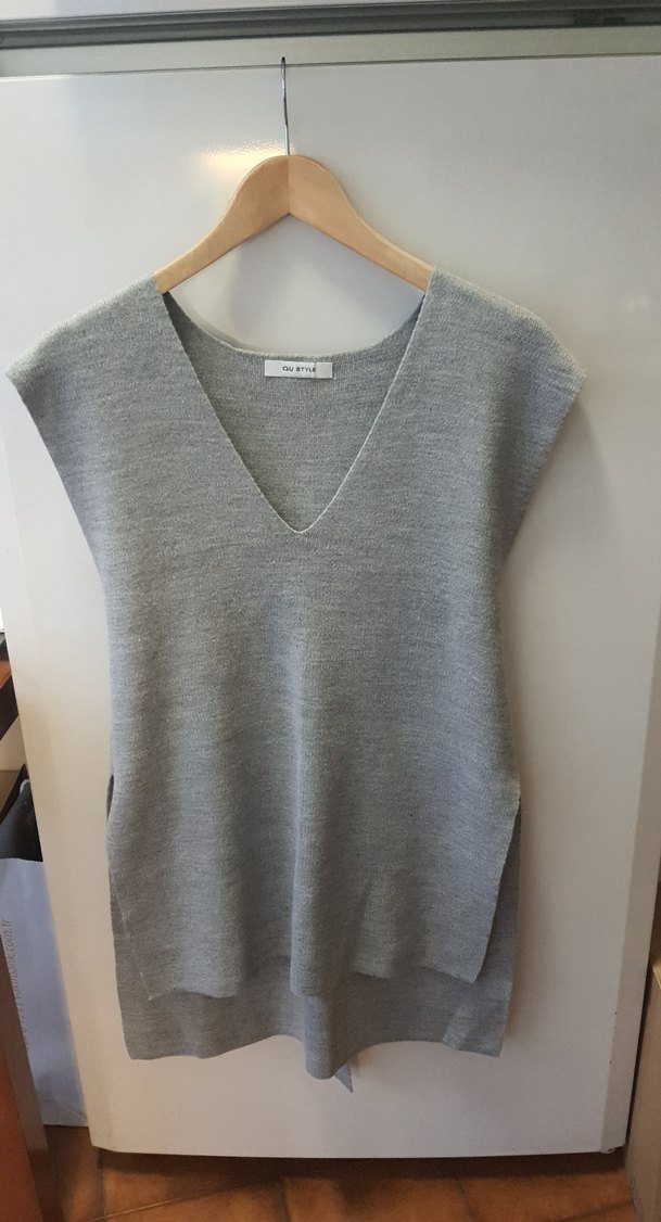 Gri renkli, yün kumaştan, V yakalı ve normal boyda, salaş kesim örgü kadın süveter. Minimalist ve desensiz tasarımıyla gündelik kullanıma uygundur.