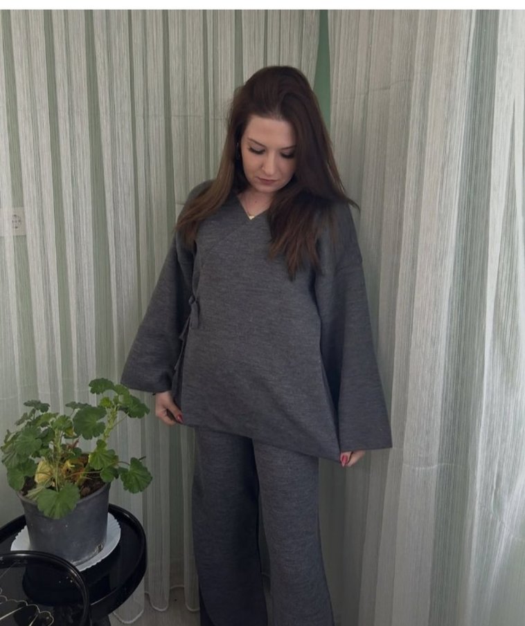 Gri V Yaka Örgü triko takım