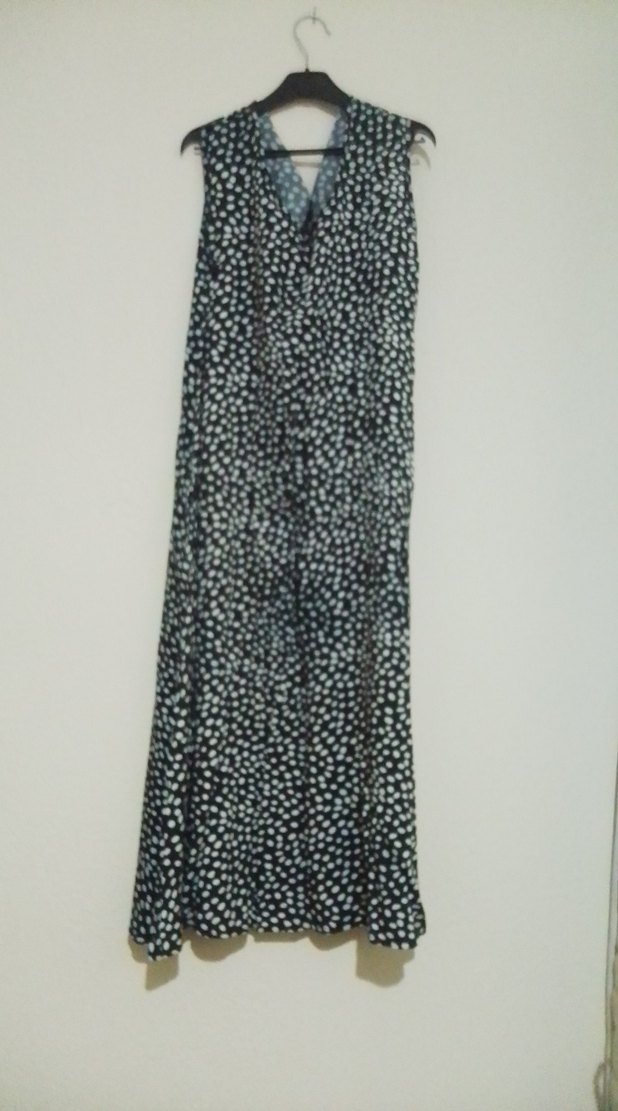 Gri tie-dye desenli, kolsuz uzun elbise. V yaka, piliseli ve bol kesimdir. Bohem ve minimalist tarzıyla günlük kullanıma uygundur.
