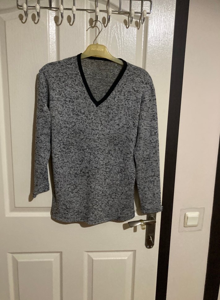 Gri V Yaka Uzun Kollu Kadın İnce Triko