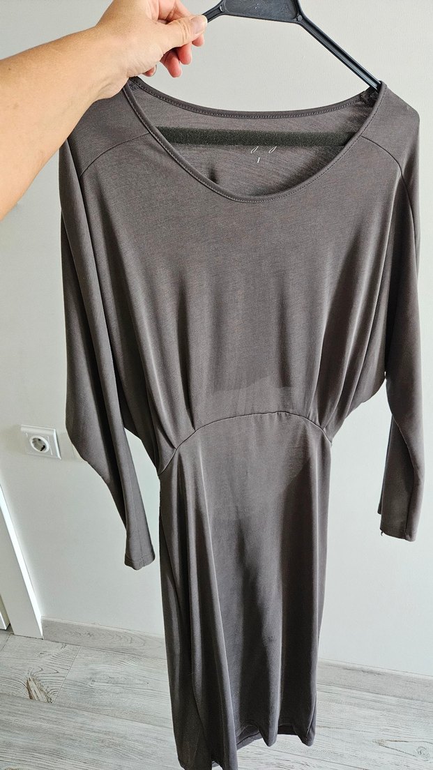 Gri renkli, V yakalı ve uzun kollu satenimsi kumaştan yapılmıştır. Salaş ve drapeli yapısıyla çağdaş ve minimalist bir tarz sunar.