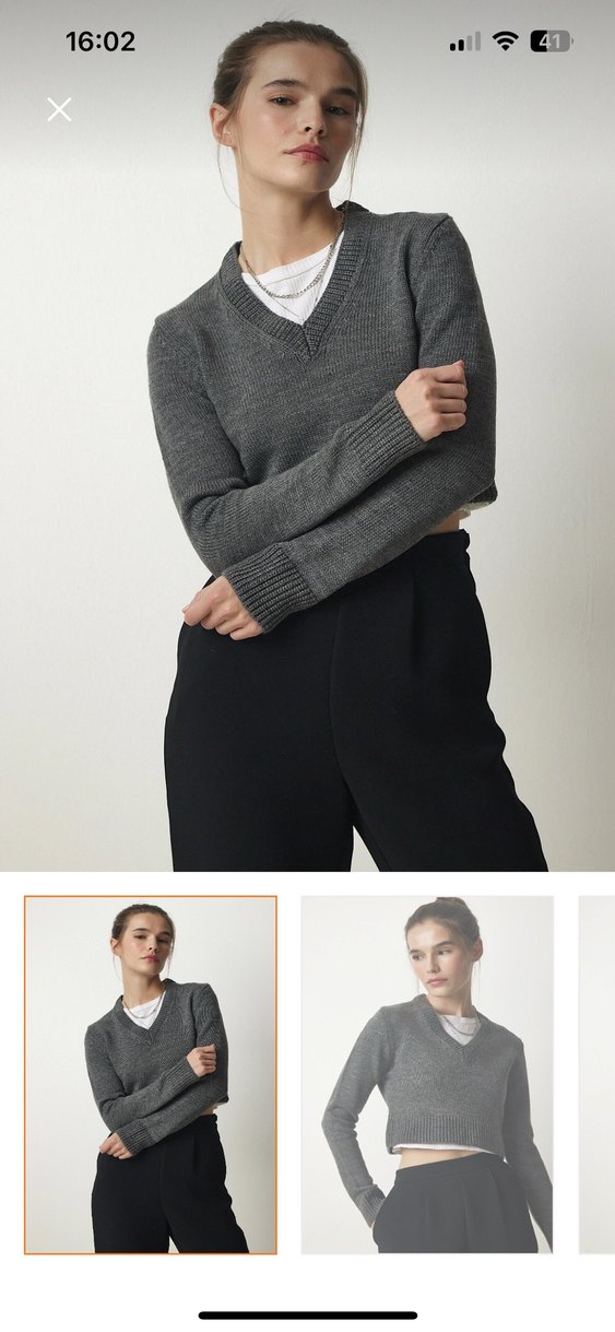 Gri yün kazak, V yaka ve uzun kollu olup, rahat bir kalıp sunar. Desensiz ve sade tasarımıyla zahmetsiz şıklık sağlar. Hiç giyilmedi iade süresi doldu o yüzden satıyorum