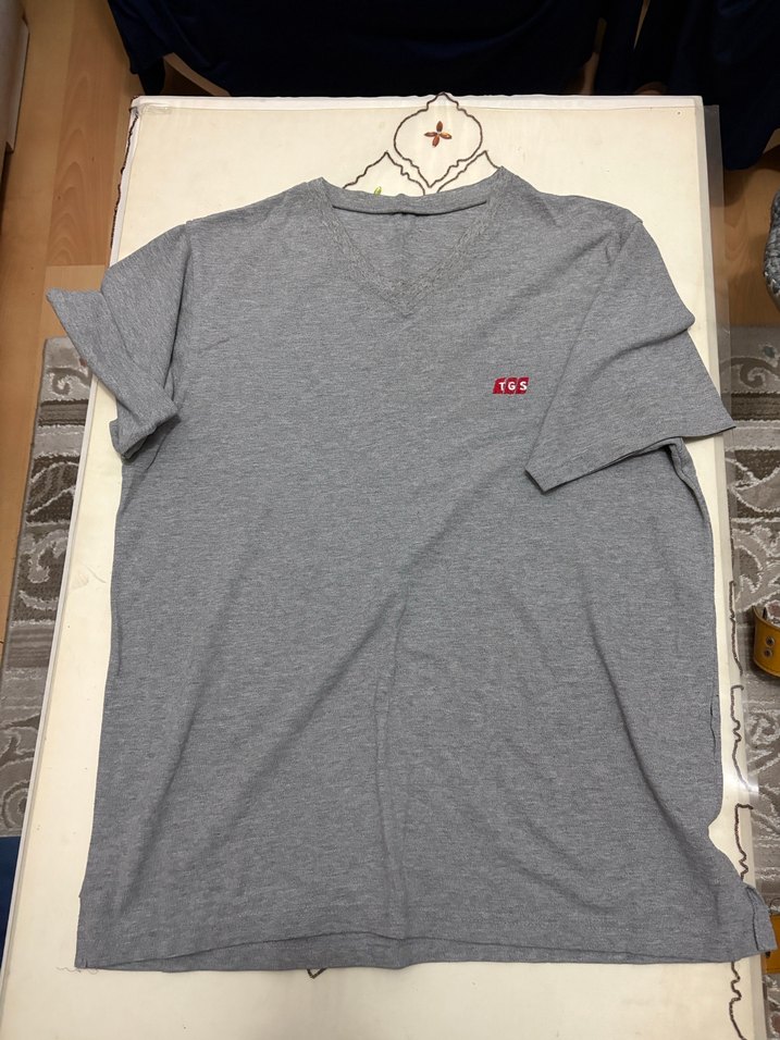 Gri V Yakalı Erkek Tişört L/XLuyumlu tişört