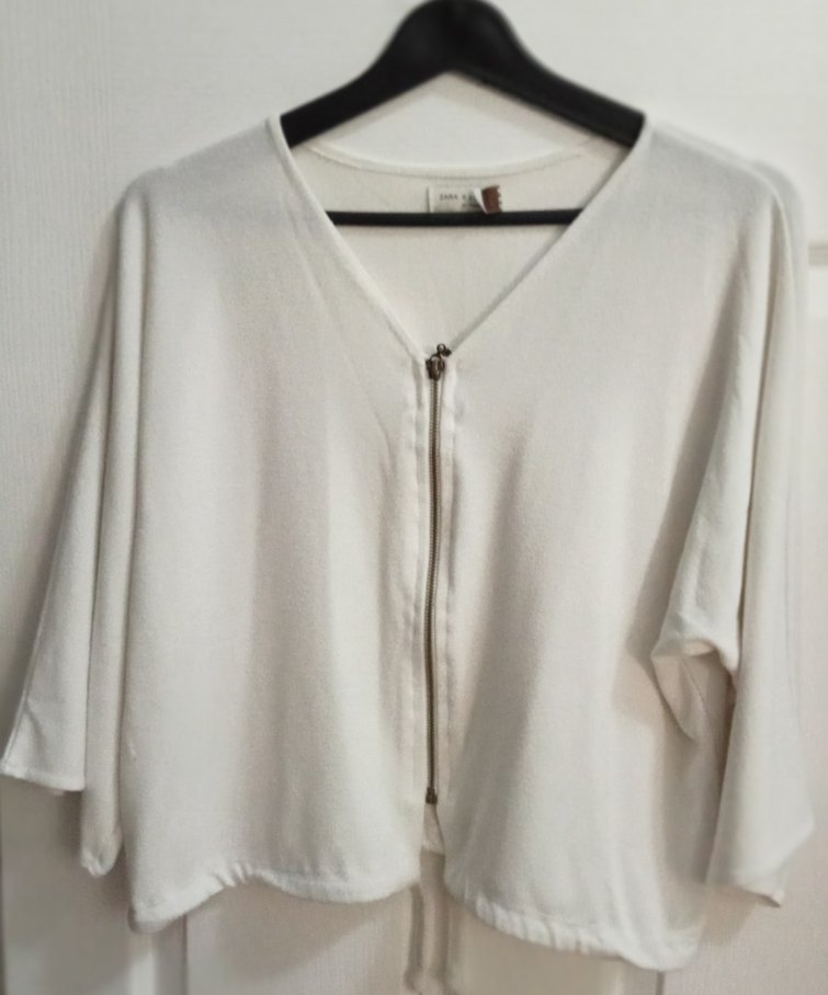 Gri renkte, V yakalı ve ön fermuarlı bol kesim kadın bluz. Kısa kollu, yumuşak pamuk kumaştan üretilmiştir, günlük rahat giyim için uygundur.