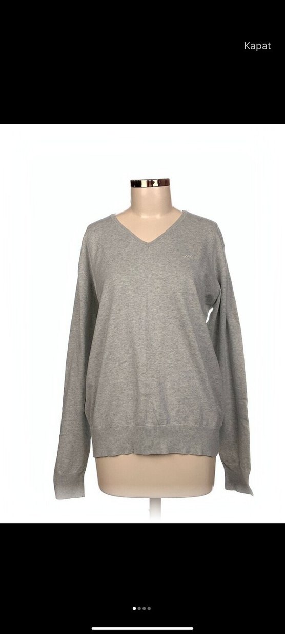 Gri renkte, V yakalı, pamuk kumaştan uzun kollu, bol kesim günlük kullanıma uygun kadın kazak. Gardropstan almistim ama bedeni olmadi hic giymedim