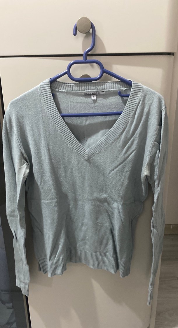 Pamuk kumaştan, V yakalı ve uzun kollu, gri renkli, vücuda oturan kadın triko. Günlük kullanım için rahat ve desensiz, sade şıklık sunar.