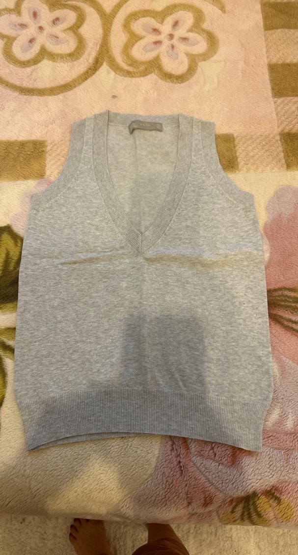 Gri renkli, V yakalı ve kolsuz triko süveter. Pamuk örme kumaştan yapılmış, rahat ve bol kesimdir. Günlük rahat sokak stili için uygundur.